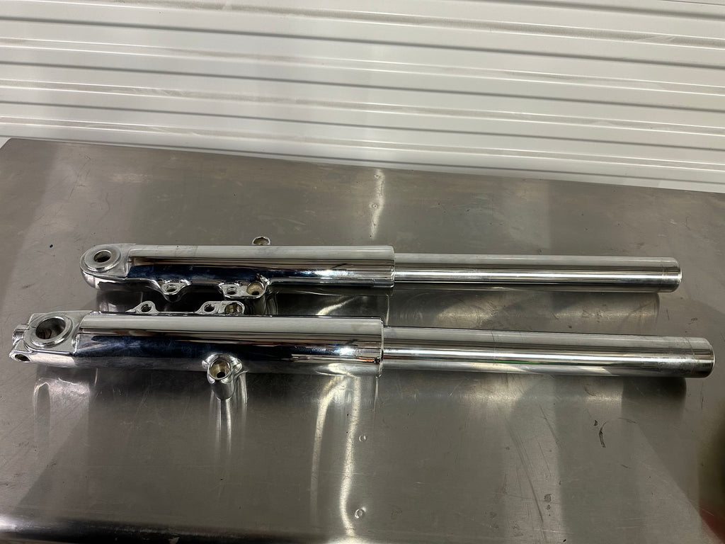 09 AND LATER 49MM HARLEY CHROME FORK LOWERS WILL COME WITH APPROPRIATE FORK CANS FOR STOCK LENGTH OR 2'OVER JUST LEAVE COMMENT OF WHICH ONE YOU NEED AT CHECKOUT.