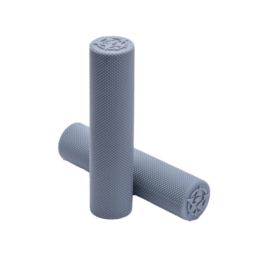 One of the first additions to the Unknown Industries parts line, the Grey Rubber Grips are made from premium materialswith a custom mold for a moto style feel. They also feature an unknown star on the end of the grip. Grips are meant to be installed on 1" handlebar grips.