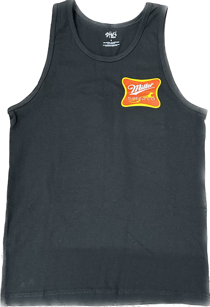 Men's classic Miller Speed Co. Beer heavyweight tank top.