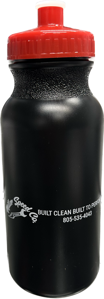 Sport style water bottle with logo. Choice of red or black.