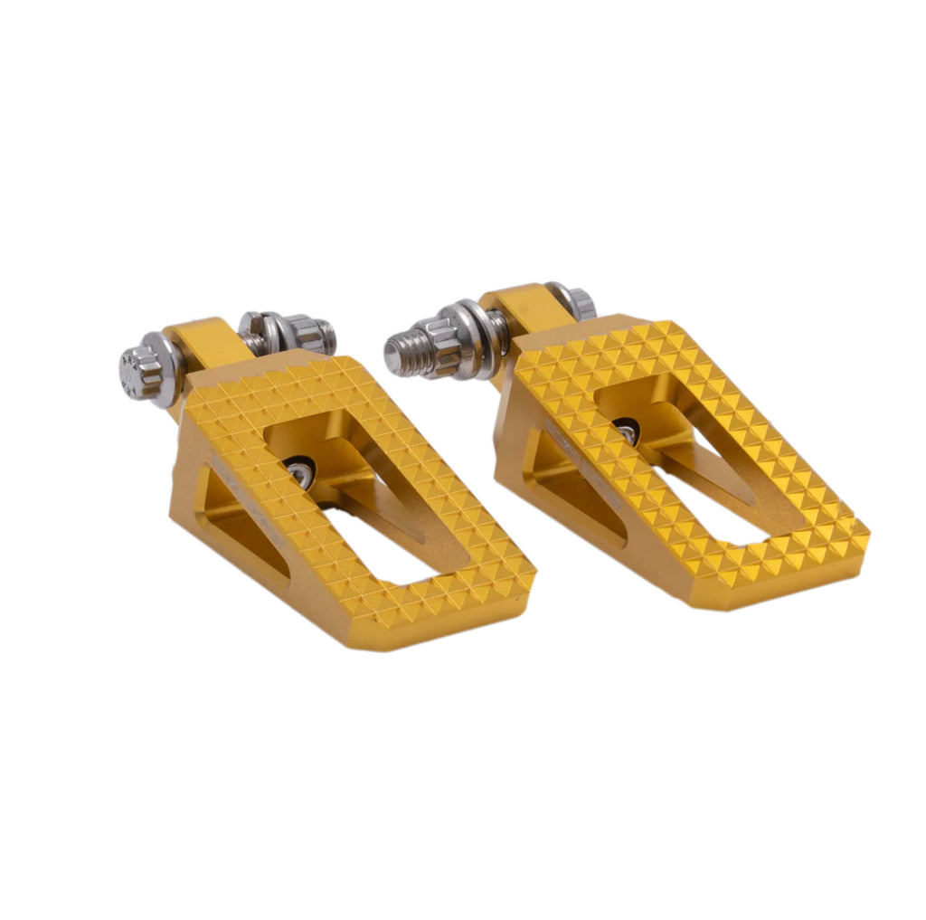 Our pegs are CNC'd from billet aluminum and feature an anodized finish. They also feature an extremely grippy surface so you can be confident that your foot won't slip. Also available with upgraded ARP hardware for your peg mount.