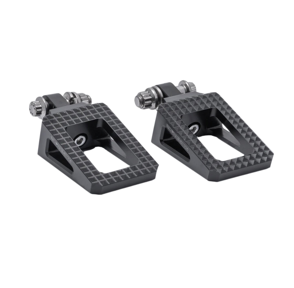 Our pegs are CNC'd from billet aluminum and feature an anodized finish. They also feature an extremely grippy surface so you can be confident that your foot won't slip. Also available with upgraded ARP hardware for your peg mount.